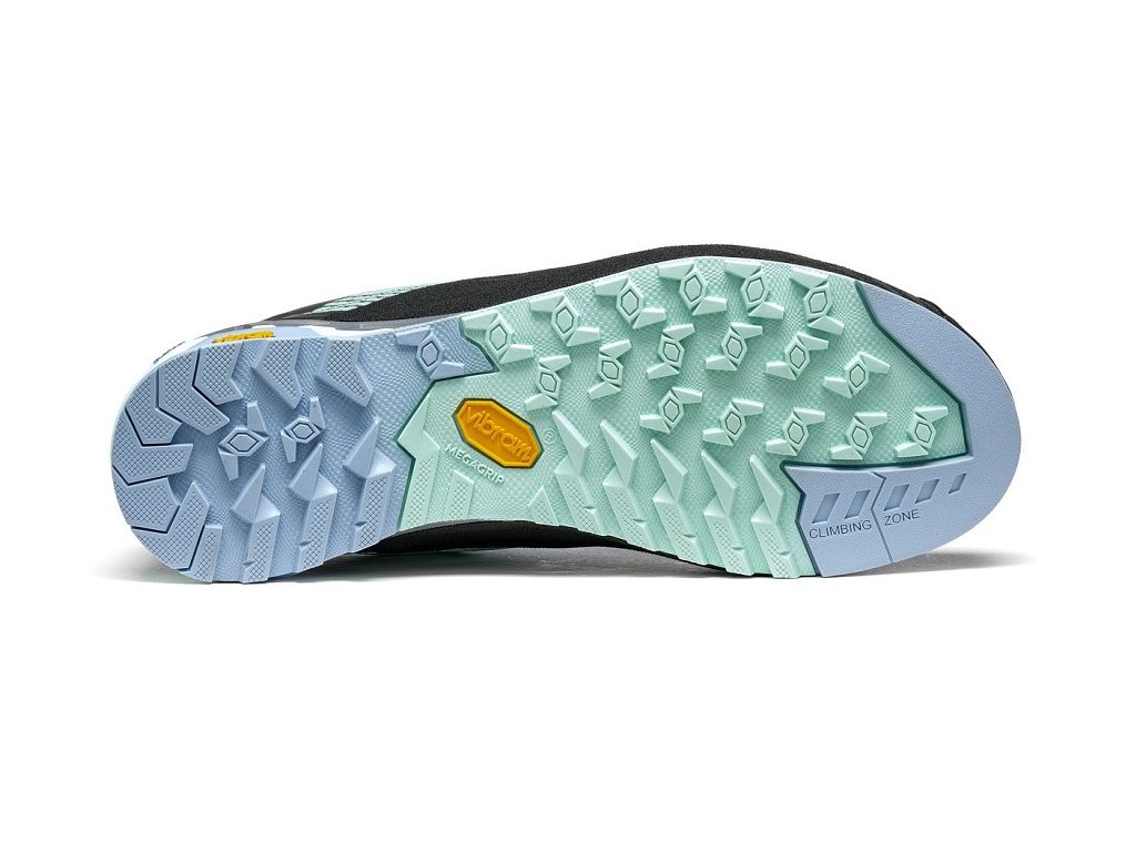 Die Asolo/Vibram AG-Laufsohle verfügt über ein selbstreinigendes Design und einen ausgezeichneten Kletterbereich. Außerdem ist sie mit einer MegaGrip-Mischung ausgestattet, die auf trockenem und nassem Terrain hervorragenden Halt bietet.