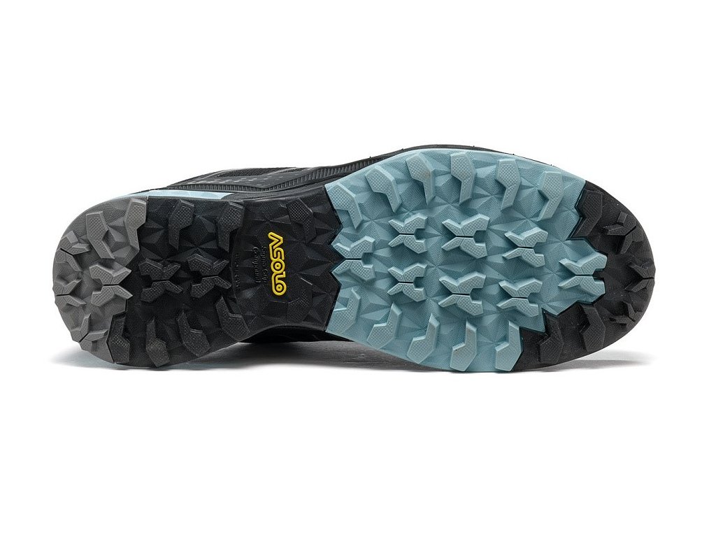 Für diese leichten Schuhe hat Asolo eine spezielle Sohle mit einer neuen Sigma Grip-Mischung entwickelt , die auf nassen Oberflächen gut greift, sich selbst reinigt und besonders verschleißfest ist .