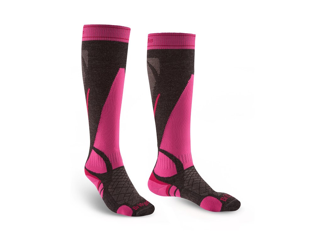 BRIDGEDALE Damen Skisocken SKI LIGHTWEIGHT MERINO PERFORMANCE OVER CALF graphit/pink - grau/pink
