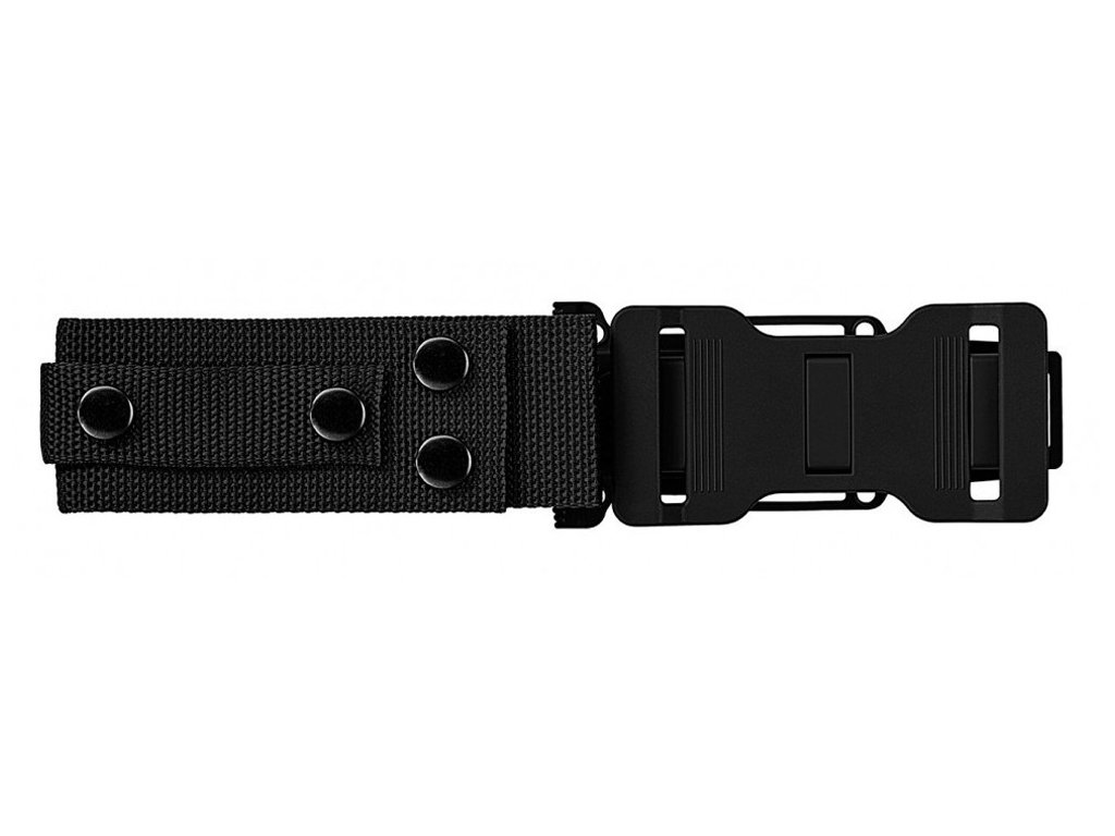 Inklusive Scheide. Kann horizontal oder vertikal an einem Gürtel, einer taktischen Weste oder einem Rucksack befestigt werden. Es ist aus gehärtetem Kunststoff gefertigt und funktioniert selbstsichernd. Das Messer kann mit einer Knopfschlaufe gesichert werden.