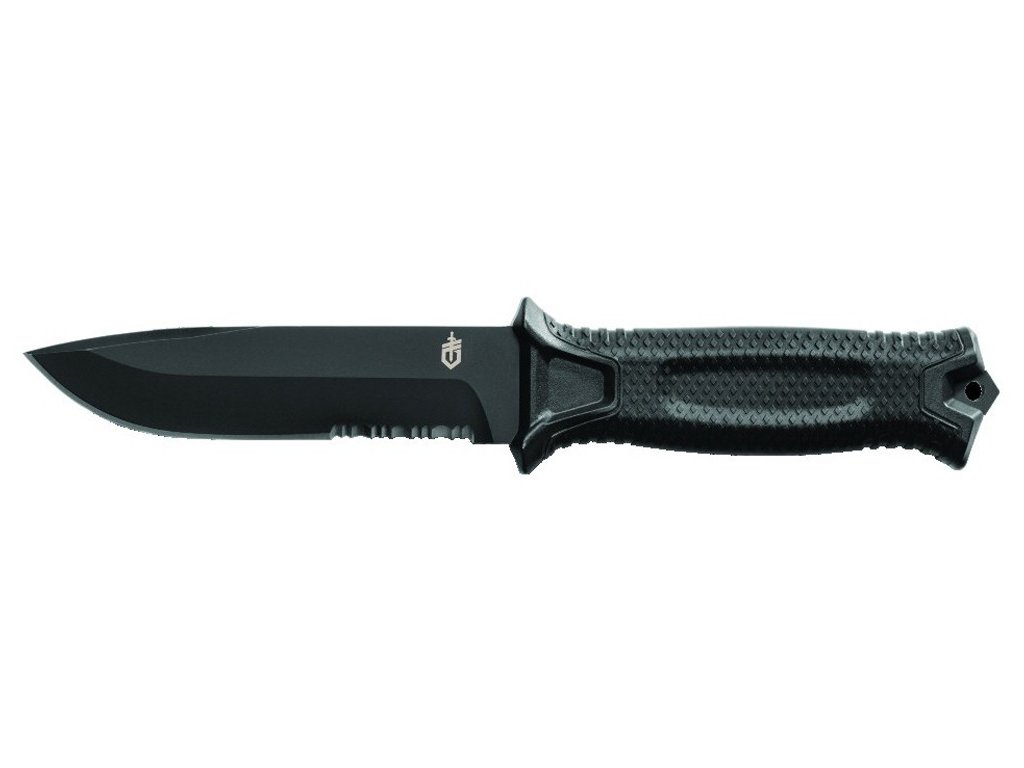 Gerber Strongarm Black, Combination Blade 31-003648:ist ein robustes Full-Tang-Armeemesser mit einer feststehenden Klinge, die eine Kombination aus glatter und gezahnter Klinge ist. Kein Material kann ihm widerstehen, es kann Fleisch, Holz, Nylonseile und Gurtband bearbeiten.