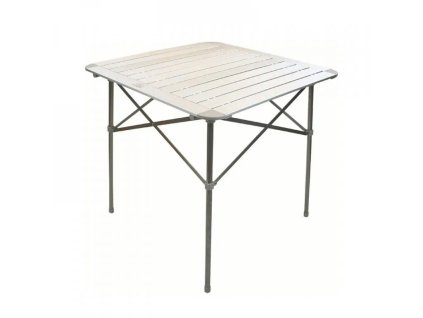 Klappbarer Campingtisch mit Aluminium-Lattenrost und Stahlgestell.