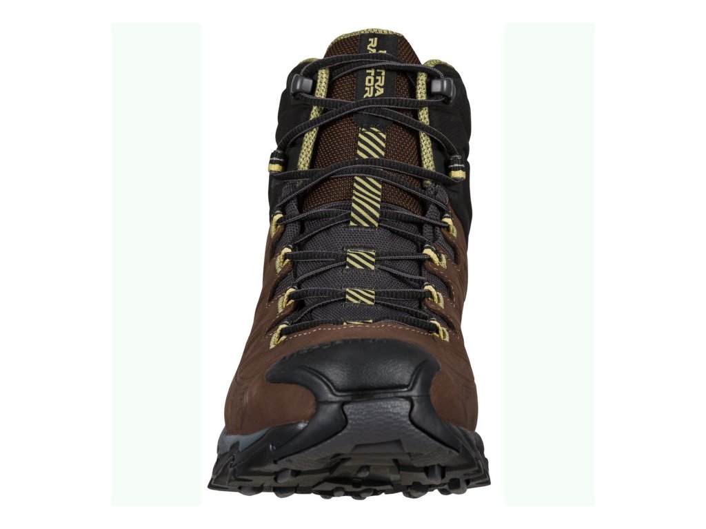 Der Ultra Raptor II Mid Leather Wide GTX von La Sportiva ist ein moderner Wanderschuh. Ihr Grundpfeiler ist eine griffige Außensohle mit einer soliden Zwischensohle. Diese dämpft den Tritt perfekt ab und hilft, die Ermüdung der Füße bei längeren Wanderungen zu reduzieren.