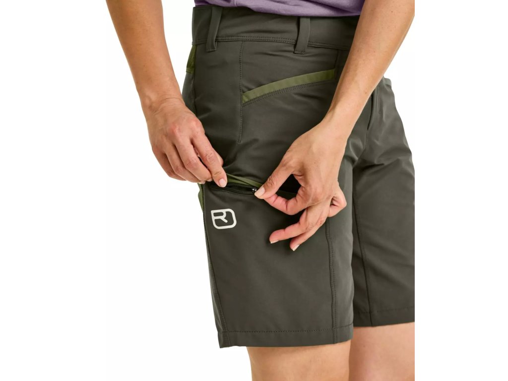 Die ORTOVOX PELMO SHORTS W für Damen ist dank ihres minimalistischen Designs, ihrer Flexibilität und ihrer Strapazierfähigkeit perfekt für sommerliche Kletter- und Wandertouren geeignet. Der körpernahe Schnitt sorgt für viel Bewegungsfreiheit unterwegs, und in den praktischen Taschen lassen sich Karte oder Topo und ein paar Kleinigkeiten verstauen. Das geringe Gewicht dieser Shorts tut ihrer Strapazierfähigkeit jedoch keinen Abbruch - die technischen Materialien sorgen dafür, dass Sie sich auch unter den härtesten Bedingungen auf sie verlassen können.