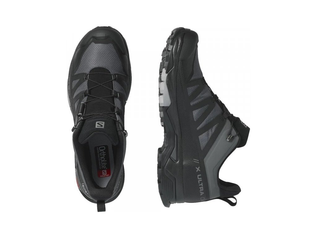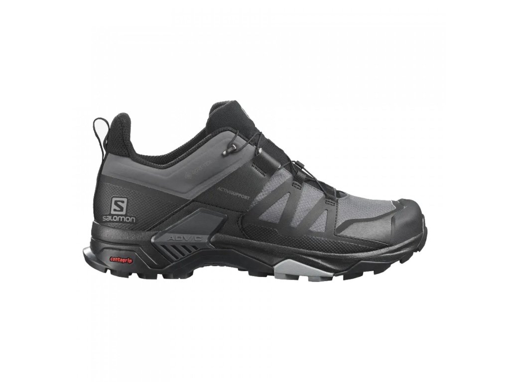 Der Salomon X Ultra 4 GTX ist ein neues Modell eines der beliebtesten Wanderschuhe im Salomon Sortiment. Es ist ein Schuh, der die besten Technologien in der Herstellung von Wander- und Laufschuhen verwendet enthält. Die exzellente Contagrip®-Laufsohle ist für die Bewegung unter den anspruchsvollsten Bedingungen geeignet. Die Gore-Tex®-Membran ermöglicht einen ganzjährigen Einsatz auch bei schlechtem Wetter. Die Schuhe sind sehr stabil dank der Advanced ChassisTM Technologie, die für eine vollständige Stabilisierung des Fußes sorgt. Die OrthoLite®-Einlegesohlen sorgen für noch mehr Komfort. Der X Ultra 4 GTX ist so wendig wie ein Trailrunning-Schuh, bietet aber die nötige Stabilität, Griffigkeit und Wasserdichtigkeit für technisches Gelände.