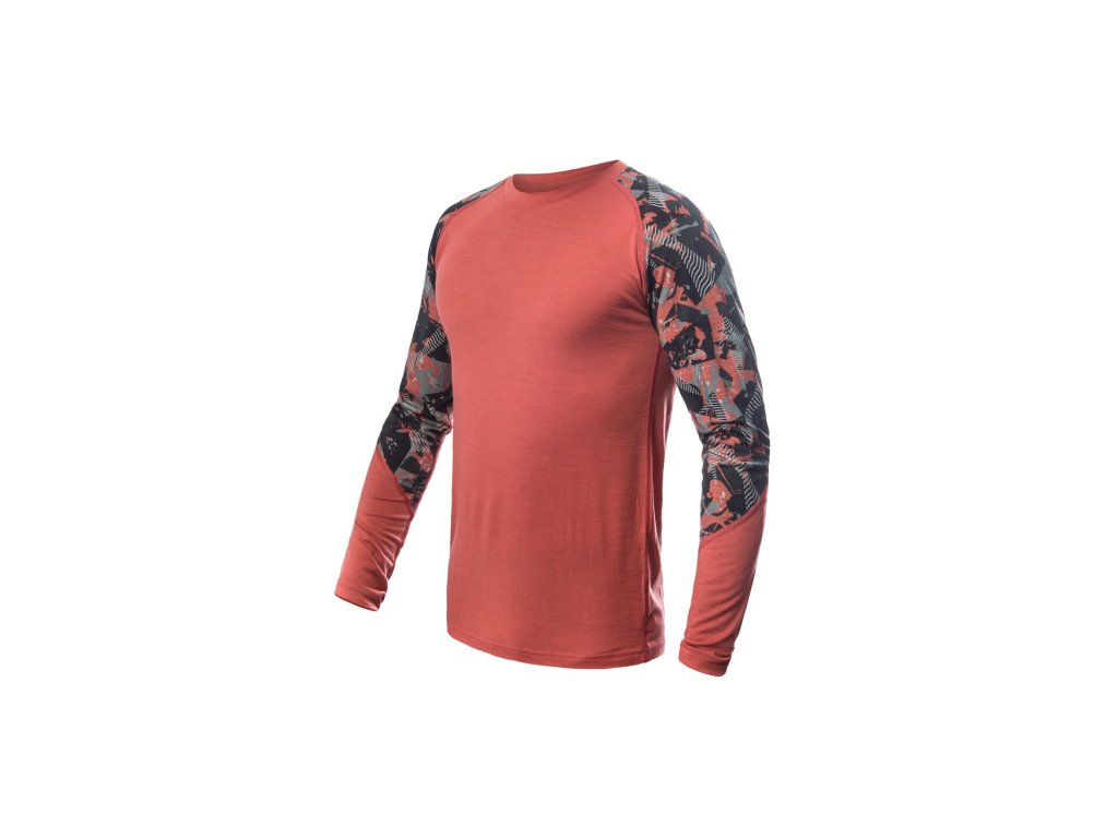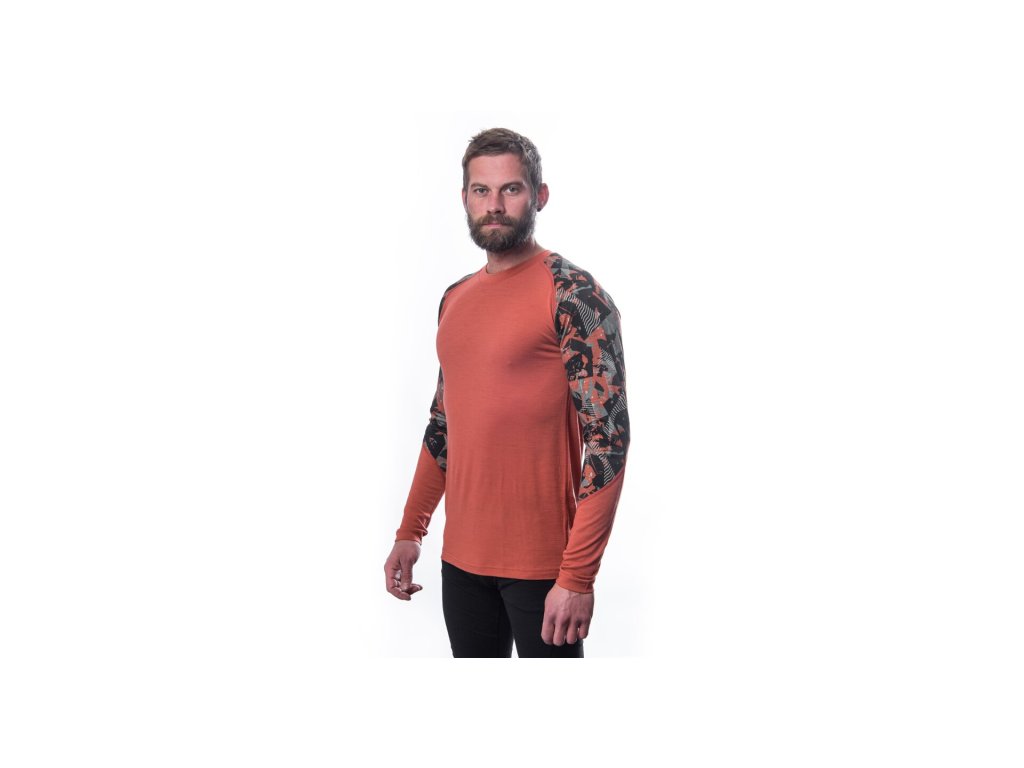 SENSOR Herren-T-Shirt MERINO IMPRESS lang. Ärmel - terracotta/ rush